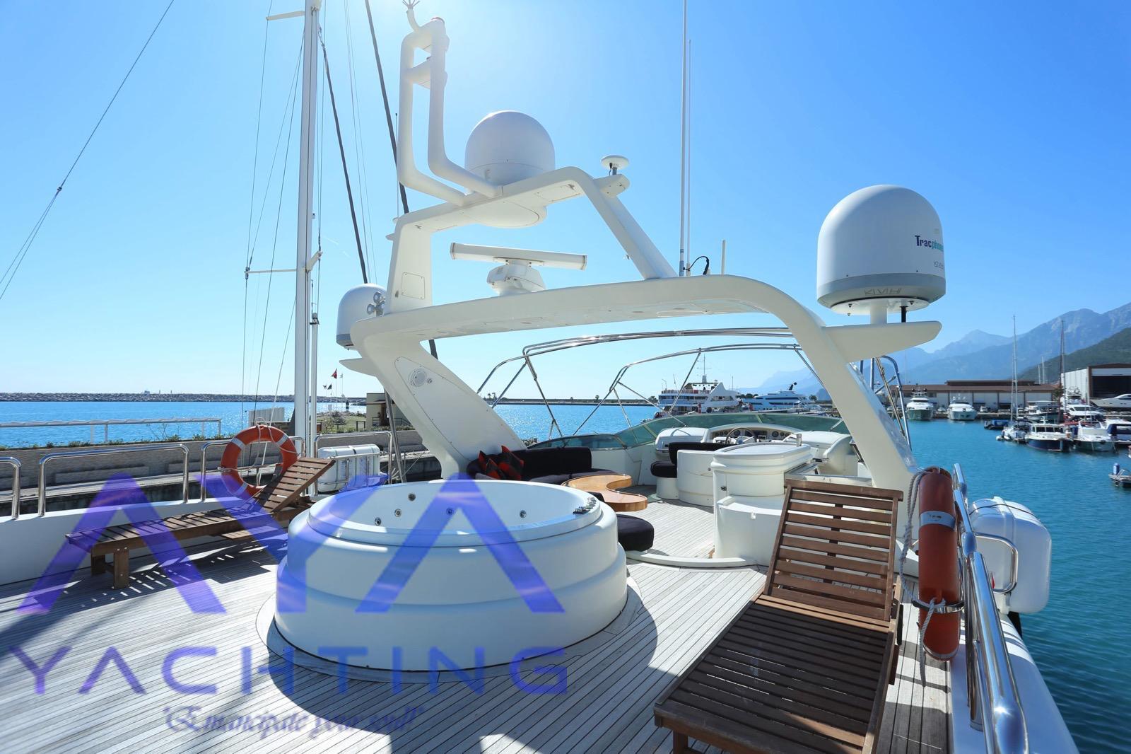 Суперяхта ведущей европейской верфи Azimut 98 Leonardo (производство Италия). 30 метров в длину, с 4-мя каютами, джакузи на верхней палубе, рассчитана на 8 персон для чартера и на 12 персон для однодневного тура. Превосходные техничские данные, росскошный внешний и внутренний дизайн сделает Ваш отдых максимально комфортным и роскошным. Эта моторная яхта занимает самое первое место среди моторных яхт Анталии